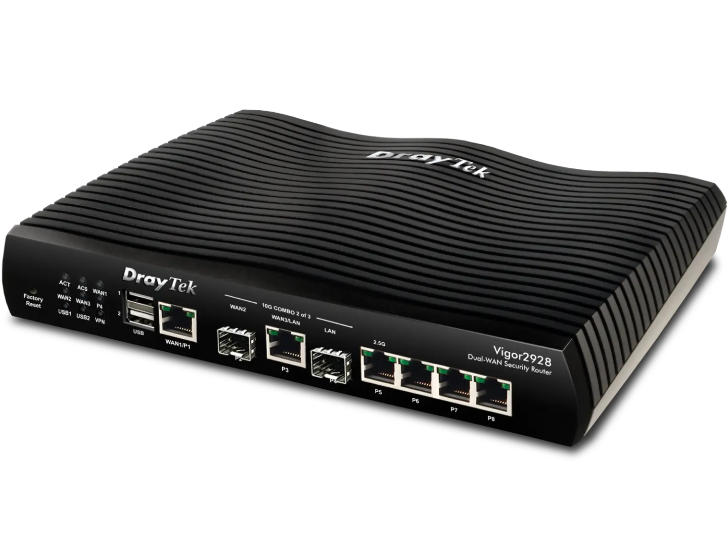 El Vigor 2928 es un router VPN Dual-WAN que ofrece un rendimiento de red excepcional con tres interfaces de 10G, compatible con conexiones Ethernet y de fibra.